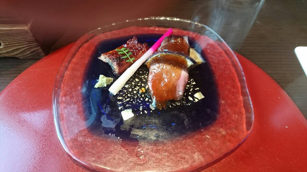 コースで茉莉花を注文して、黒毛和牛の丸なす包み焼き&ウナギ、蓼の天ぷら、マンゴープリン&黒蜜きな粉のロールケーキは、コースの中でとびぬけて美味しかった✋